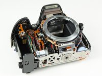 • Nothing to explain here. We're just amazed by the dizzying amount of electromechanical systems contained within a mid-priced SLR camera. Just look at all that stuff!