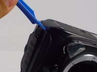 Now use a plastic opening tool and carefully pop off the metal tripod thread plate.