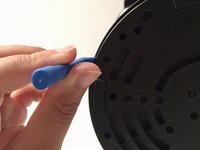 Unscrew six 0.6cm screws by holding the bottom board with Torx #10 screwdriver to remove the board.