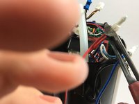 Squeeze and remove the clamp that secures the main tube feeding into the water heating element. Remove that tube.