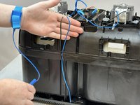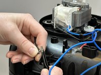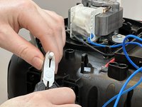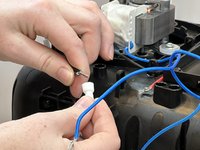 Using pliers, gently uncrimp and remove the plastic wire cap from the blue and black wires.