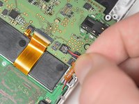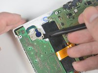 Pry the last ribbon cable attached to the lower case using a plastic opening tool.