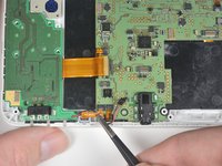Pull the ribbon cable, connected to the mic, gently towards you with a pair of tweezers.