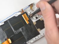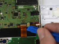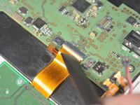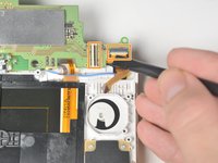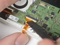 Pry the ribbon cable from its socket, just left of the joystick, using the flat side of a spudger.