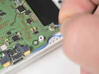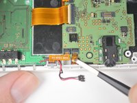 Pry the retaining tab on the connector behind the infrared receiver and gently pull the ribbon cable from the connector with tweezers.
