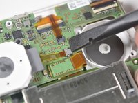 Use a plastic opening tool to pry the SD card ribbon cable off the socket on the motherboard.