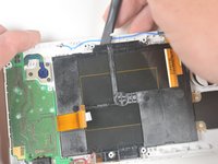 Pry the last ribbon cable attached to the lower case using a plastic opening tool.