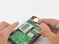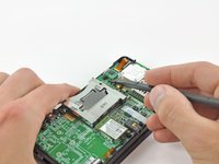 Use a plastic opening tool to pry the shoulder button ribbon cables off their sockets on the motherboard.