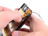 A strip of black adhesive tape holds the upper LCD to the display bezel. Use the tip of a spudger to remove the tape from the LCD housing.