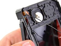 Pry the camera status LED out of the upper display bezel with the tip of a spudger.