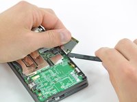Slide the flat end of a spudger under the corner of the Wi-Fi board, and lift it away from the motherboard.