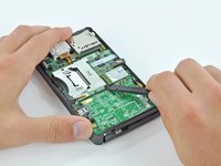 Use a plastic opening tool to pry the shoulder button ribbon cables off their sockets on the motherboard.