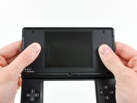 Insert the spudger in between the lower casing and lower panel near the top right corner of the DSi.