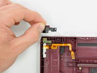 Pry the volume button/left shoulder button connector off its socket on the motherboard with a spudger.