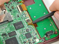 Insert a spudger between the upper and lower case at the bottom left corner of the DSi.