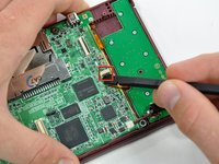 With the pointed end of the spudger, pull the D-Pad/power button cable from its connector on the motherboard.