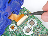Option 1: Open the main body of your Game Boy to a 90‑degree angle and gently lay the motherboard down. Make sure the main body is resting on top of the motherboard to give the cable slack.