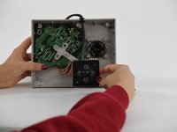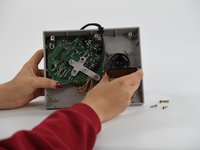 Remove the four 12 mm screws from the small square panel on the right with a Phillips #0 screwdriver.