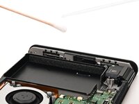Apply high-concentration (90% or higher) isopropyl alcohol or thermal material remover to a cotton swab or lint-free cloth and wipe away any remaining thermal putty on both the heat pipe and shield plate.