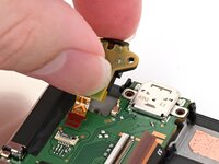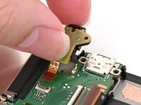 Pick up the headphone jack assembly and pull its cable straight out of its connector to remove it.