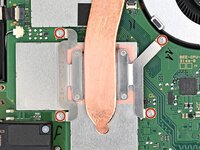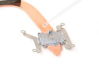 Use the flat end of a spudger to scrape off the thermal putty on top of the copper heat pipe.