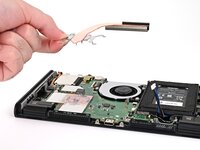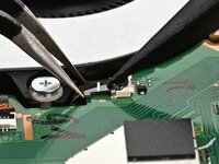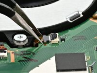 Use tweezers or your fingers to slide the fan cable into its ZIF connector until it's fully seated.