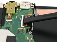 Use the point of a spudger to flip up the locking flap on the headphone jack ZIF connector, located on the top edge of the console's board.