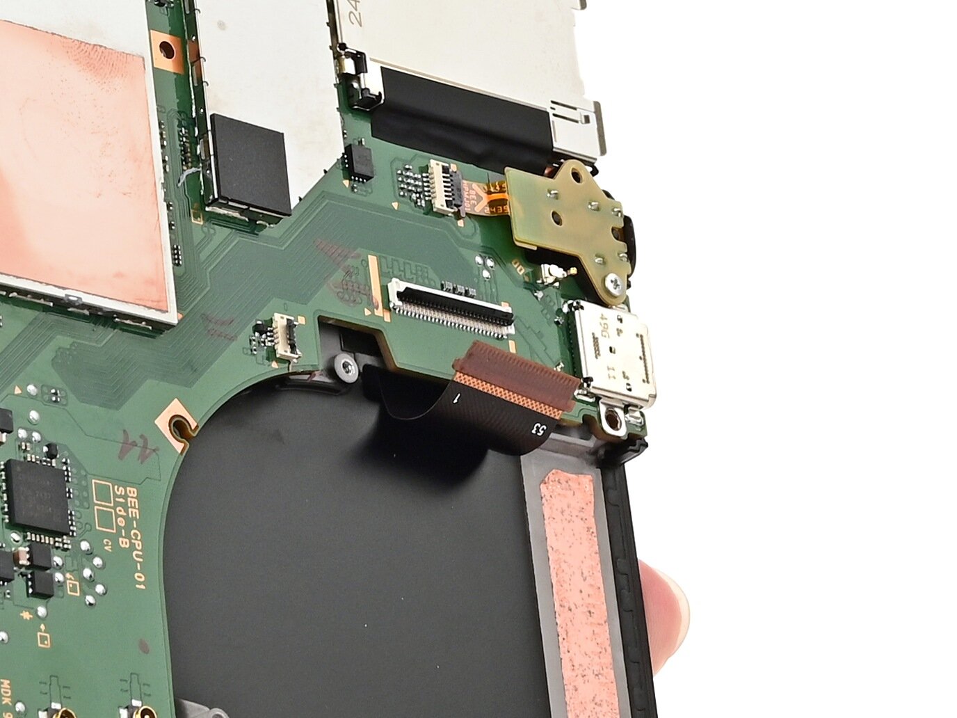 Use tweezers or your fingers to slide the screen cable into its ZIF connector until it's fully seated.