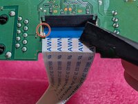 Once you've lifted the flap up, take a note of the orientation of the cable and how it sits in the connector. The cable has two tabs, on one the right and one on the left (marked with a red circle), which align the cable in the connector. Good idea to take a photo at this step for reference later.