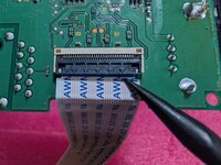 Gently pull the film cable out of the circuit board. The cable should slide free when lightly pulled.Don't pull on it, you're liable to break the cable or connector. -