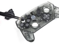 On re-assembly, you may have trouble getting the top circuit board and shoulder button support structure to snap into place. It’s easiest to get the circuit board around the right analog stick hole, and push it all the way down until it is in place, then to secure the shoulder button support structure.
