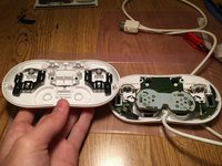 Set the rear panel aside and turn your attention to the other half of the Classic Controller with the logic board, analog sticks, and buttons.