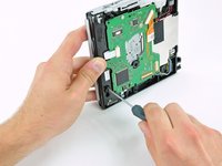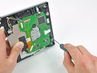 Use a metal spudger to remove the rubber foot stuck to the side of the Wii near the DVD drive opening.