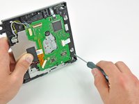 Use this guide to replace a broken DVD drive. Depending on your new part, you may have to swap out the four rubber grommets on the DVD drive housing.