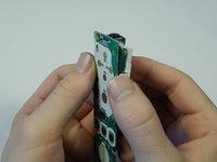 Flip the motherboard so that the rumble motor and the white plastic housing face up.
