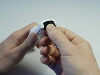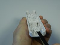 Grip the free edge of the black sensor screen and gently pull it down to remove from the Wii control.