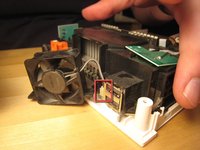 Note that at least one part is thermal padded to the logic board cover. You might have to replace this thermal pad, but I didn't. I just pushed them back together. Oh well!