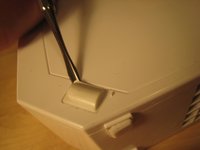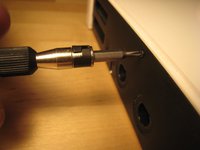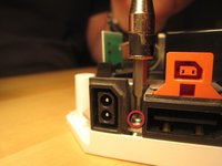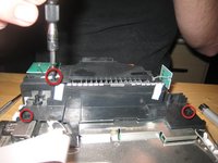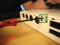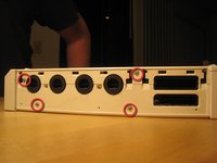 Remove these three black case screws. The one on the right is a few mm longer. These screws hold on the black plastic cover for the GameCube ports.