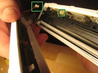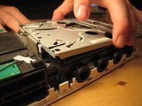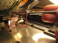 We lifted up the cover of the optical drive by removing the six Phillips #00 screws. These are all labeled on the previous image.