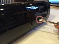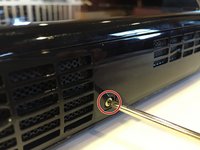 Unscrew the two screws on the side of the Wii U near the air vents with a Phillips #00 screwdriver.