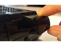 Using a flathead screwdriver, spudger, or tweezers, remove the stickers covering the screws on the bottom of the Wii U and on the side of the Wii U.