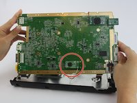 • Flip the motherboard over to view the underside where the Wii U's wireless modules are located. The Bluetooth module is circled in red.