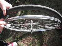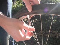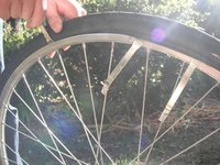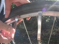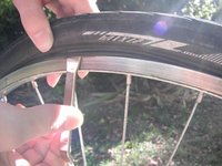 Keep the tire lever anchored on a spoke with the notch on the lever's opposite end.