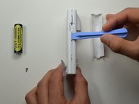 Place the plastic opening tool in between the two plastic panels and slowly work your way around the device.