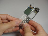 Using the flat end of the spudger, pry apart the inner clear plastic frame with screen attached from the metal frame.