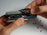With the motherboard and LCD unit removed, gently pull the power button out of its housing.