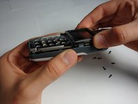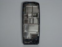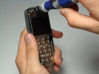 Flip phone over and find the sticker that holds the metallic plating together with the phone's case.