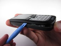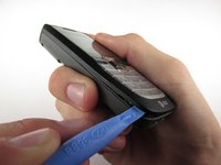 Gently pry the front cover away from the back cover while sliding the plastic opening tool towards the top of the phone.