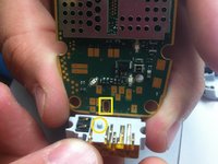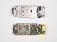 Proceed to pull the front cover away from the rest of the phone. (refer to second picture for results) The marking foreshadows what we will be using in the next step.