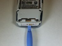 Place the flat edge of the pry tool into the seam on the side, just above the screen. (refer to picture on where to place pry tool).